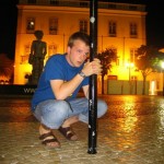 I then walked home and watched TV (we have 59 channels, I feel like I am at the Ritz)! I watched Extreme Makeover Brazil Addition (SIDENOTE: I was very impressed to see how patriotic the Portuguese are of Brazil. Everywhere in the country you will see Portuguese and Brazilian flags flying together in harmony). I then turned on Inside the Actors Studio which was unfortunately dubbed in Portuguese but I watched it for 30 minutes anyways because Natalie Portman was being interviewed and she is lovely. I then attempted to go to bed…my room was a sauna of heat and there was pounding music consisting of bongo drums, an organ and a very loud singer. I blinked my eyes and realized it was midnight and I wasn’t going to get to bed anytime soon. I asked myself…Am I really a loser that I am in bed with all this partying going on outside? So I got my cloths back on in order to seek out this mysterious noise-music-fun. I walked towards the city square to find empty streets. Obviously I took the time to pose with the statue in the center of the square using my cameras timer function as it was a great opportunity to do some vogue shots without the embarrassment brought on by onlookers. Locals were busy in the streets on ladders putting up banners and hundreds of flags and streamers in support of their national team at the World Cup (being in Europe and GERMANY of all places this summer for the World Cup should prove to be a bit crazy). I finally found the noise…the explanation is simple. I thought the festival was just for film but I now understand that it is a music festival as well. I walked about 1 minute past my own building and found a huge square with about 5 thousand people jumping and bumping to a very lively Portuguese band. I suddenly felt embarrassed as it was 1am and the entire crowd was mostly made up of women and men over 60 years old with a beer in their hands. How had I been out-cooled by senior citizens? Never again will I go to bed at midnight!