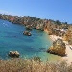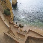Friday morning I took a walk along the coastline in search of the perfect beach for me to bake at for a few hours. The coastline trail is high up on the cliffs and you can take pictures of great panoramic views. I felt like somewhat of a daredevil as I walked over some natural limestone bridges that were literally a mile above the beach bellow and a foot wide! The sand was incredibly coarse almost like glass at some spots but I managed to find an excellent little beach nestled in between two giant grottos. This beach was located at the very tip of the coast at the famous Pointa da Piedade. I found a nice spot and lay down staring directly up at a perfect blue sky with pink flamingos flying overhead and white clouds swirling in the distance. I felt as though I was staring at the heavens through a straw as 360 degrees around me stood hundreds of feet of sharp cliffs.