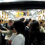I walked up the platform steps as my massive back pack attempted to drag me down the stairs. I clutched the banister and made it to the top with closed eyes and a sigh. I soon groaned, noticing hundreds of people waiting in line for the next train. It was 9pm on a Saturday evening, rush hour, dangerous here in Tokyo. I forced myself to stay alert by pinching the insides of my cheeks. Then the train slowed to a stop and the indoor chimes let of an overly jubilant sonata and everyone pushed into the crammed train car. I stood squished in the middle of the train surrounded by what appeared to be the entire city of Tokyo. I could not move as my bag was jammed in between two people behind me. I could not turn to apologize. I could not apologize for that matter, I do not speak Japanese. I occupied myself by staring at the train plasma screens which announce delay times on each of the various Japan Rail Metro lines and chimes each upcoming stop.