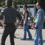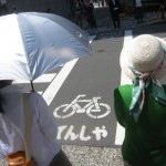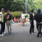 On the short walk from Harajuku Station to the Yoyogi Park Bridge we ran into several interesting people. My head turned when I noticed a group of six men who looked to be in their late 40’s dressed in school girl costumes. A double take, I spinned around and looked at them again to make sure they were indeed full grown men dressed as Japanese middle school girls. Taka and Ken laughed at my reaction and explained in broken English, “they not gay, they love school girl style, they married, it is their hobby.” I could not help but laugh. In North America I can not imagine a group of middle aged men getting together and dressing up as school girls to walk around in public. Apparently their wives encourage this hobby. The whole dressing up as a little girl thing doesn’t seem to freak their wives out. Perhaps the world would be a better place if full grown heterosexual men could enjoy the time old tradition of getting together with their mates and dressing up as their daughters. I try to imagine what it must feel like to run into your father on the weekend as he is dressed up as, well, you.