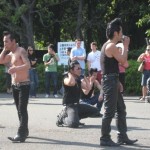 At the end of the bridge we met a fork in the road. We took the left and arrived at Yoyogi Park where a huge crowd of people formed a circle around ten Rockabilly dancers. These middle aged Japanese men dressed in jeans, leather boots and black undershirts dance to rock and roll tunes of the 1950’s. They all had massive greased rooster hair standing on their heads like crack infused Elvis impersonators. I was told that these guys have been doing this for years every weekend in the Park. Somewhat of an interesting tradition. It is really interesting to see how American pop culture from the past has influenced far away cultures such as Japan. I am certain Elvis would have been shocked if he were told that a group of Japanese impersonators would be dancing to his music in the middle of Tokyo.