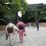 We walked back to the fork in the road and continued up the other path towards the cities famous Meji Jingu (shrine). This shito shrine is dedicated to the deified spirits of Emperor Meiji and his wife. The construction of the shrine began in 1915 and was built in the traditional Nagarezukuri style and is made up primarily of Japanese cypress and copper. The shrine is located in 175 acres of forest, of which stand 120, 000 trees of 365 different species which were donated by people from all parts of Japan when the shrine was established. This tranquil forest is visited by many people both as a spiritual home and place for rest and relaxation.