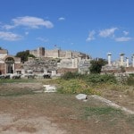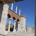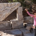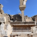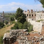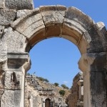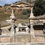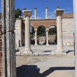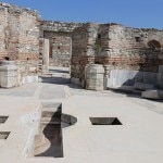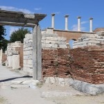 the obvious first spot to head for, Ayasoluk Hill, has been the focal point of settlement in every era. It’s famed as the burial place of St John the Evangelist, who came to Ephesus in the middle of the first century and died around 100 AD. The sixth century-Byzantine emperor Justinian decided to replace two earlier churches sheltering John’s tomb with a basilica worthy of the saint’s reputation. Until its destruction by Tamerlane’s Mongol’s in 1402, it was among the largest and most ornate of all Byzantine churches. The purported tomb of the evangelist is marked by a slab on the former site of the alter.