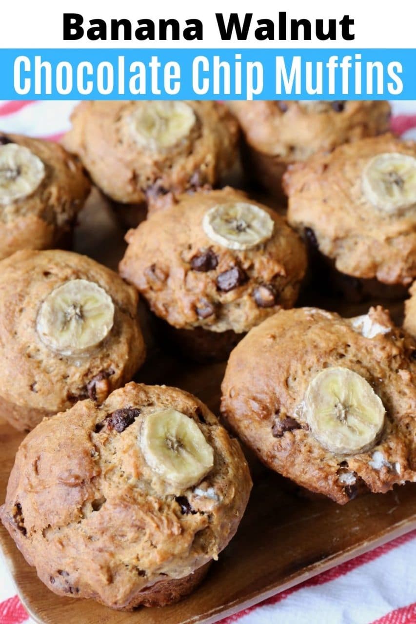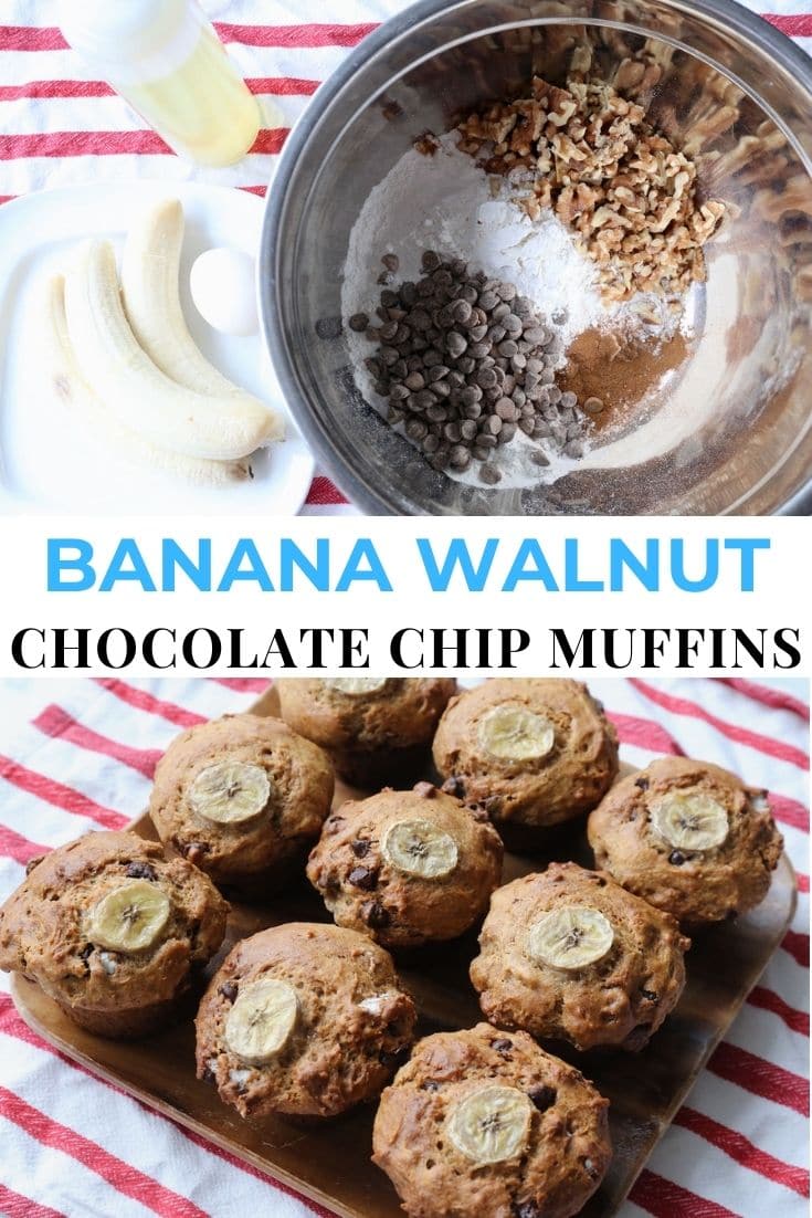 Save our homemade Banana Walnut Chocolate Chip Muffins Recipe to Pinterest!