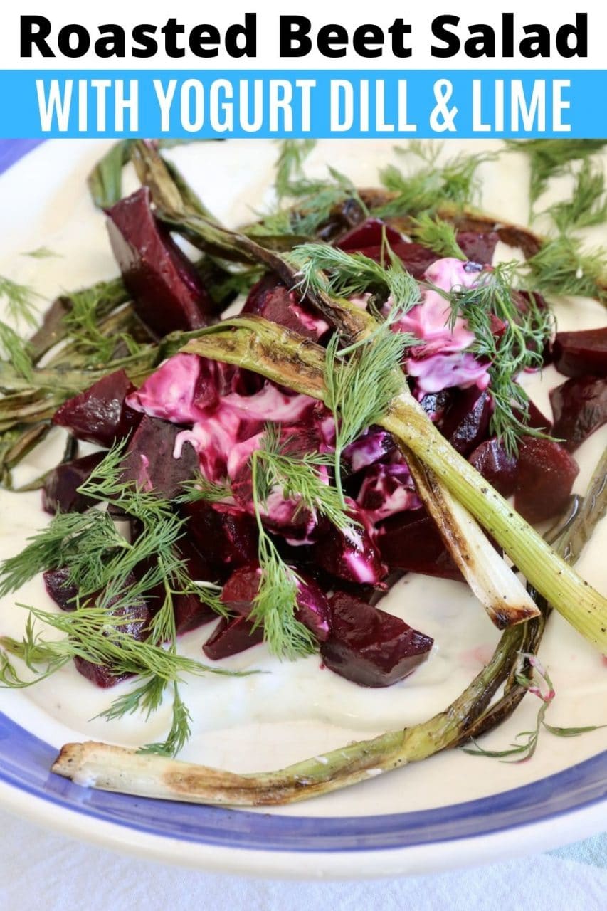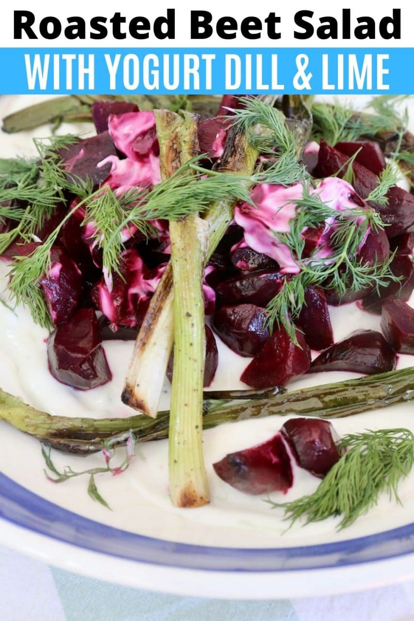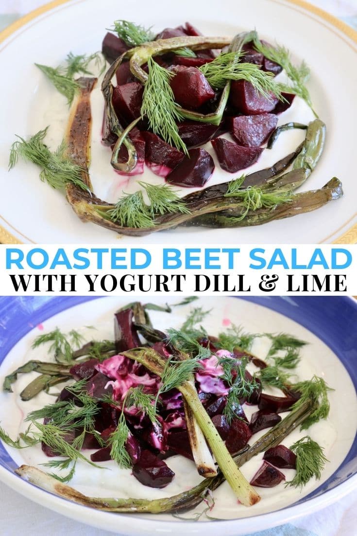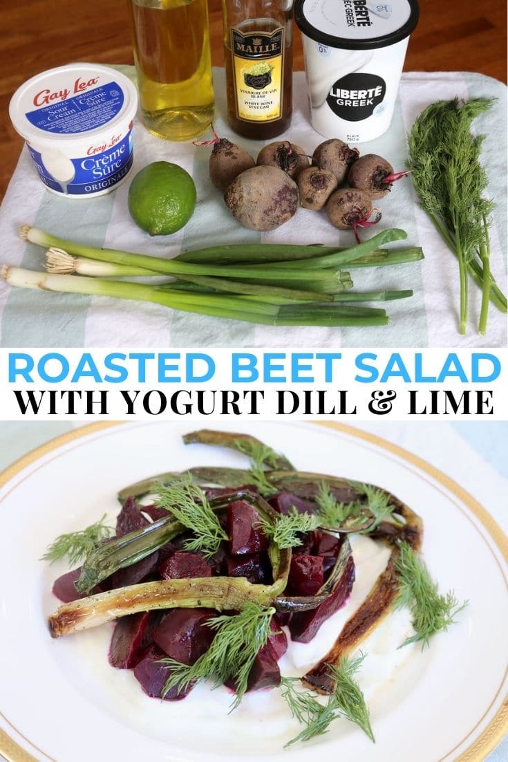 Our quick & easy Beetroot Salad with Yogurt recipe features roasted beets, white wine vinegar, olive oil, scallions, Greek yogurt, sour cream, lime and fresh dill.