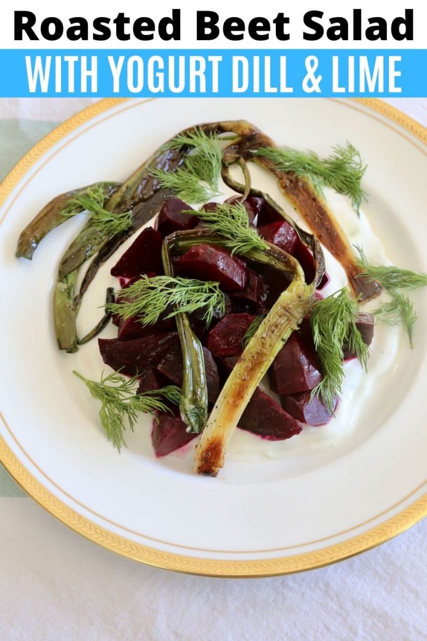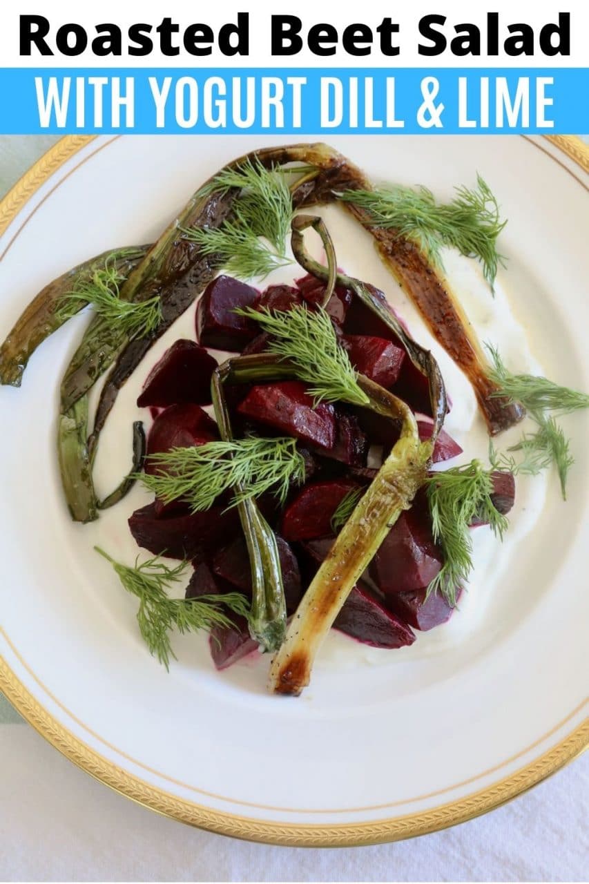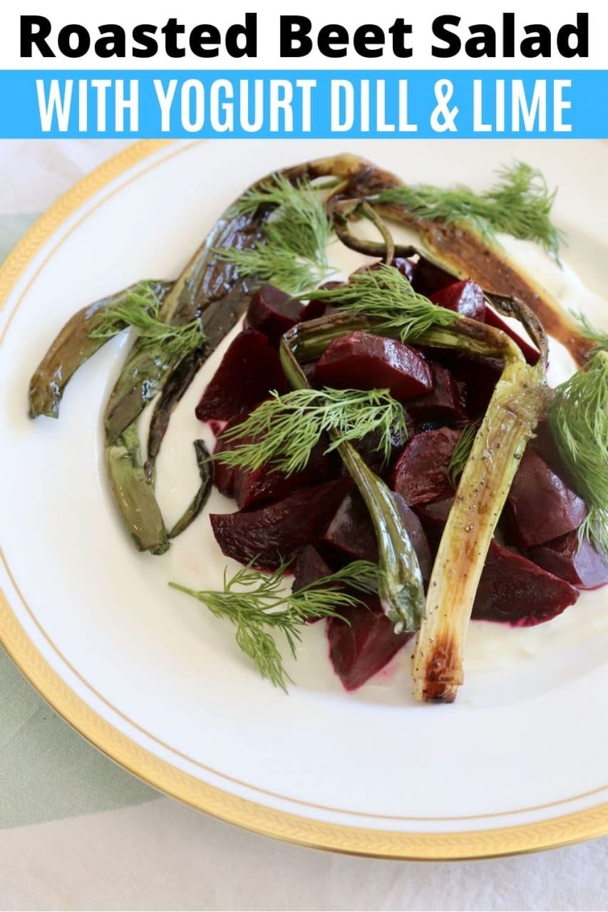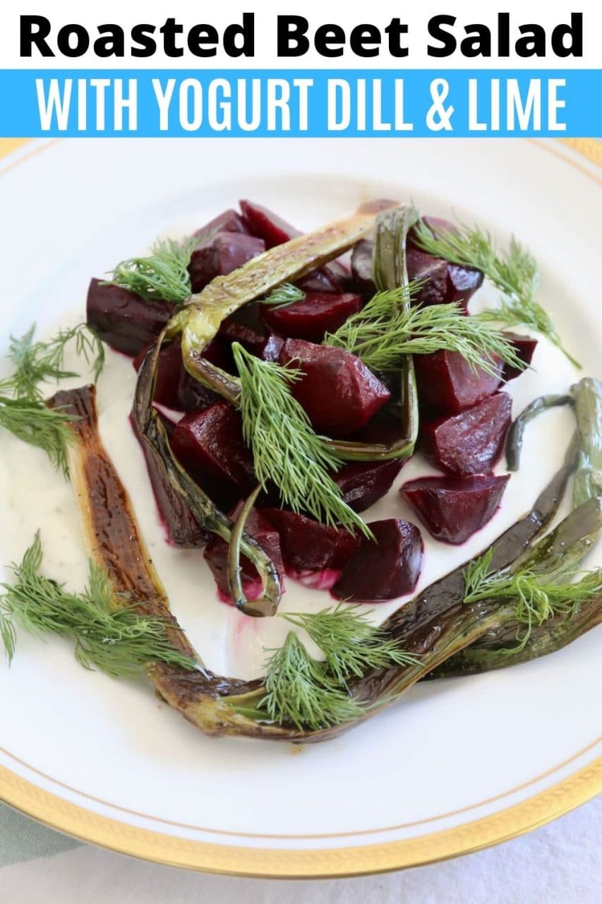Our quick & easy Beetroot Salad with Yogurt recipe features roasted beets, white wine vinegar, olive oil, scallions, Greek yogurt, sour cream, lime and fresh dill.