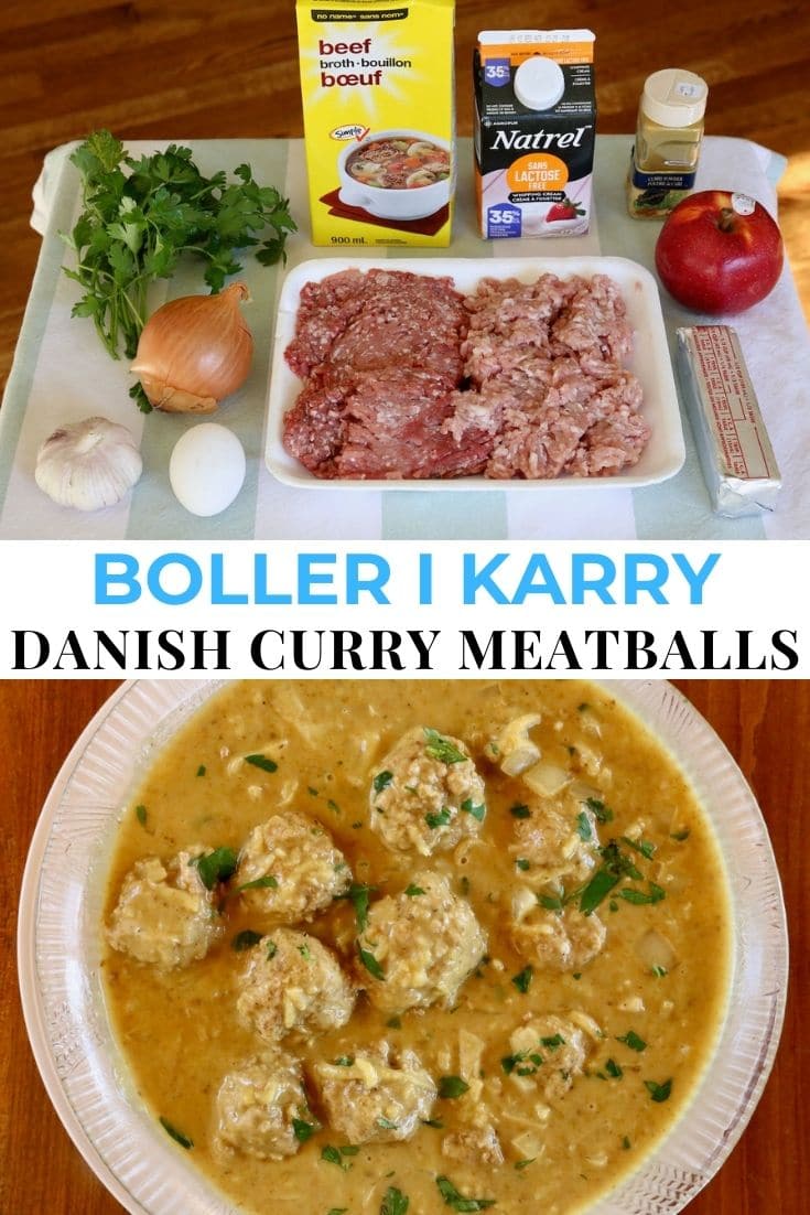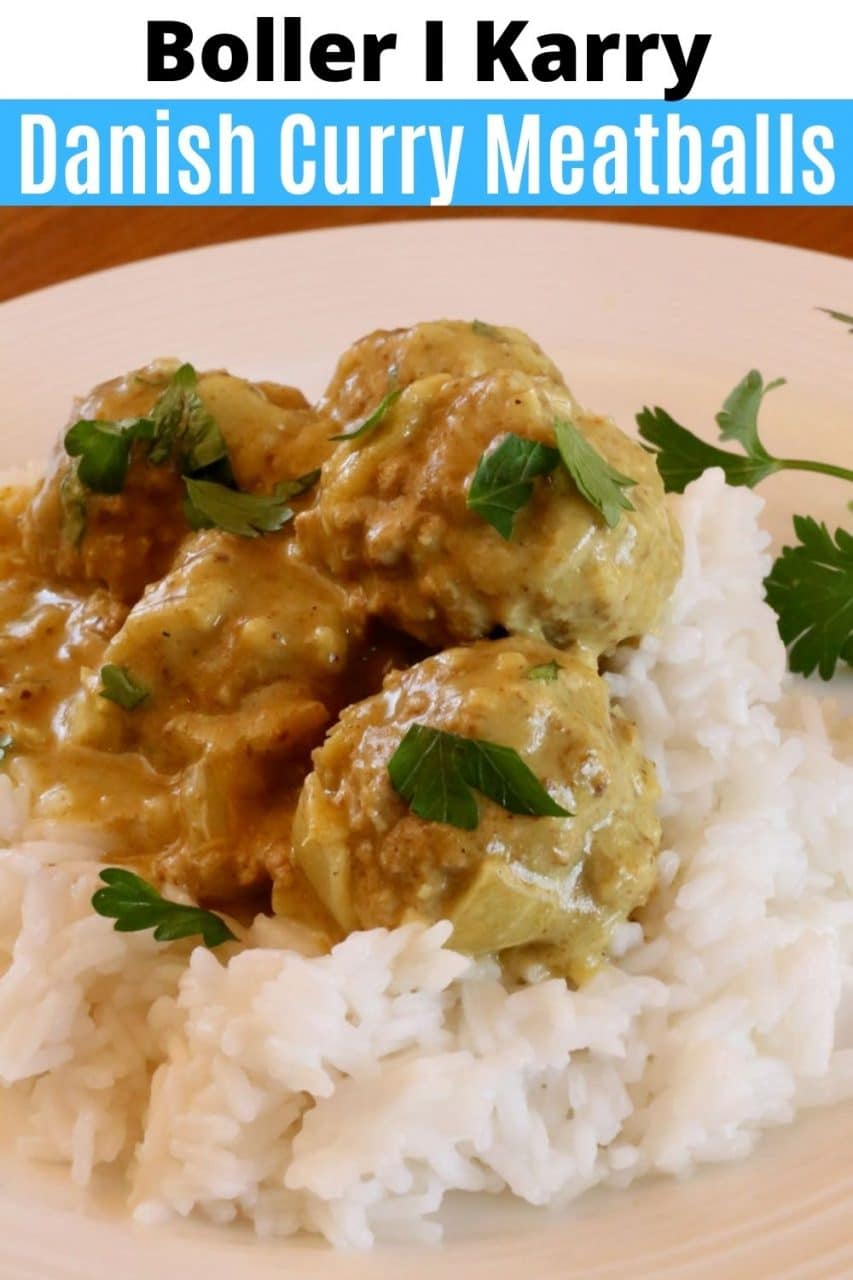 The dishes name translates to Danish Meatballs in Curry. It is sometimes also referenced as Boller I Curry.