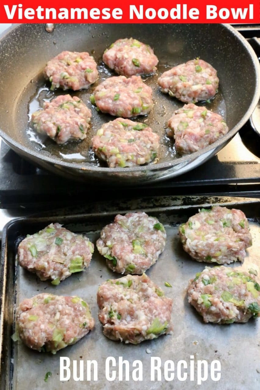 - Mix Bun Cha ingredients except oil until combined. Shape pork balls into small patties with your hands.