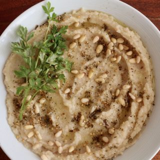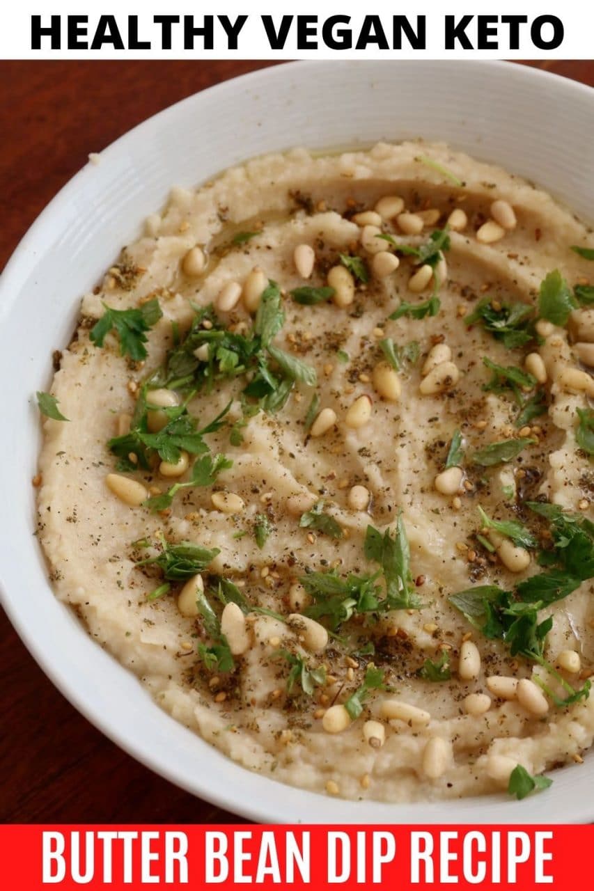 Learn how to make the best Butter Bean Dip. Our healthy vegan keto Middle Eastern recipe features pine nut, parsley, cumin, garlic & za'atar.