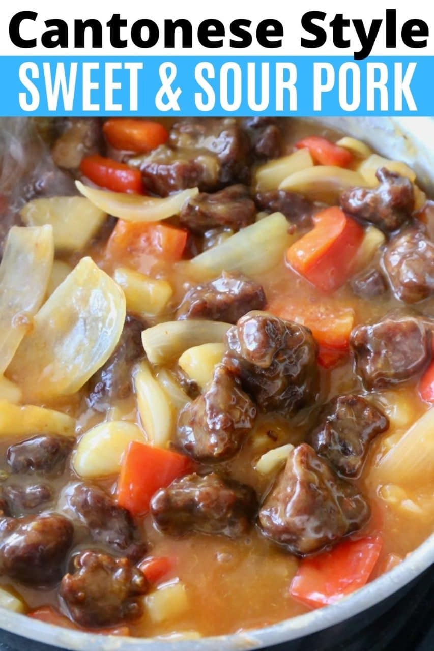 Save our homemade sweet and sour pork cantonese restaurant style recipe to Pinterest!