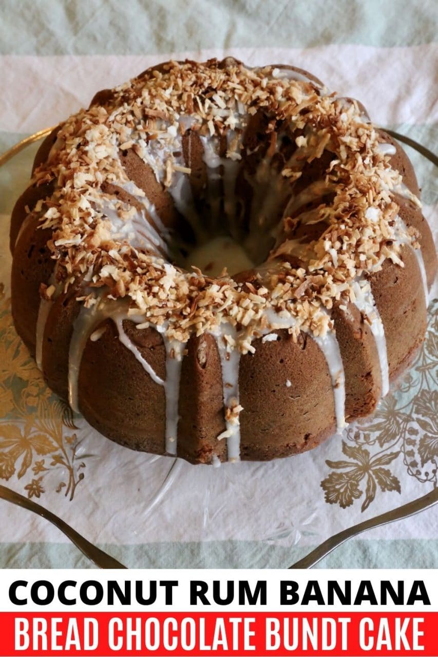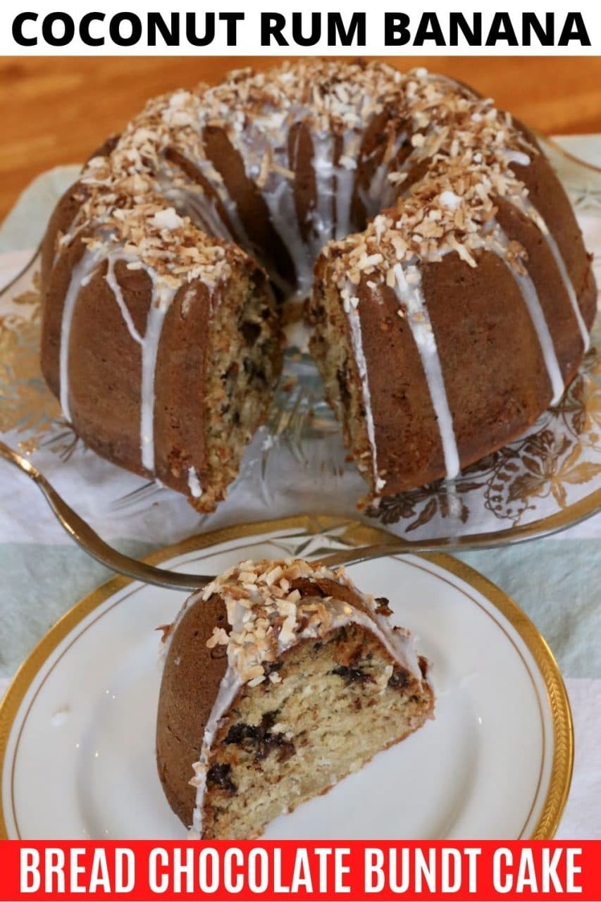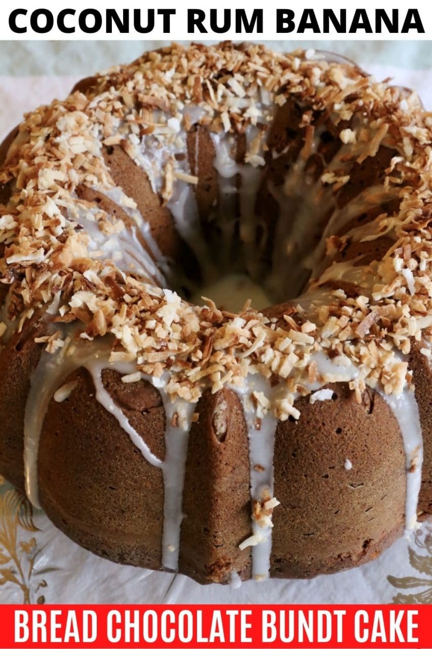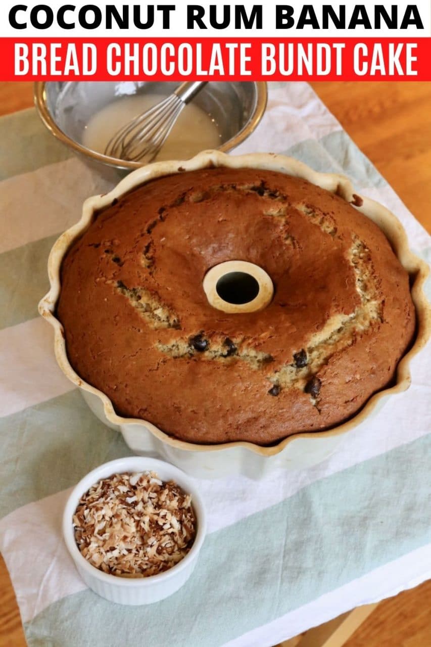 Our decadent moistCaribbean Banana Bread recipe features a chocolate chip banana bread bundt cake, simple sweet glaze and toasted shredded coconut.
