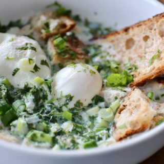 Steaming milk broth, oozing poached eggs, freshly chopped herbs and crusty bread arrive at the table and offer a simple and affordable morning meal.