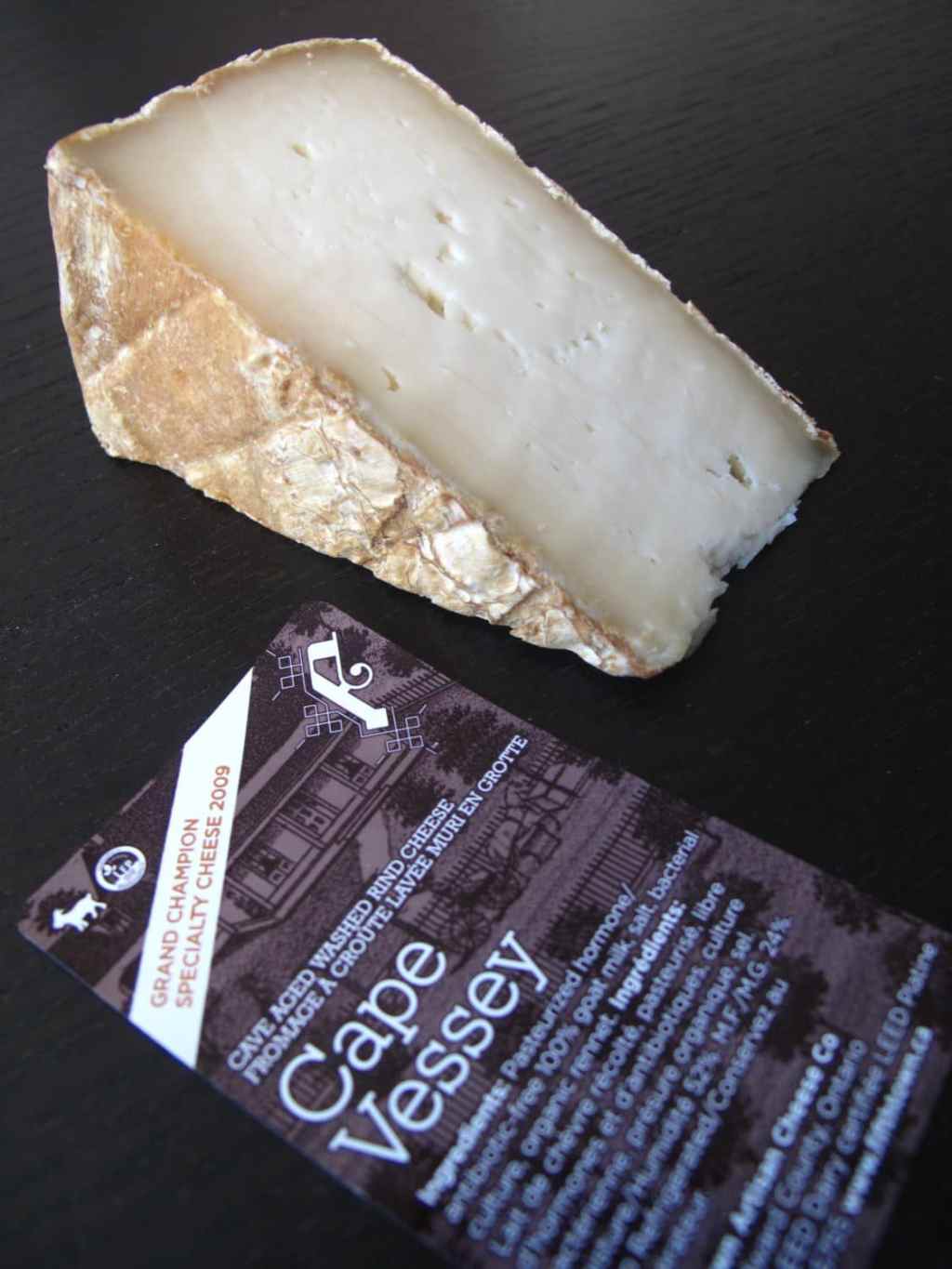 Grand Champion Goat Cheese at the 2008 Royal Winter Fair. Firm cheese with a pleasant chewy washed rind. Slightly salty, with complex aggressive flavours. Creamy on the palate with a rich flavourful finish.