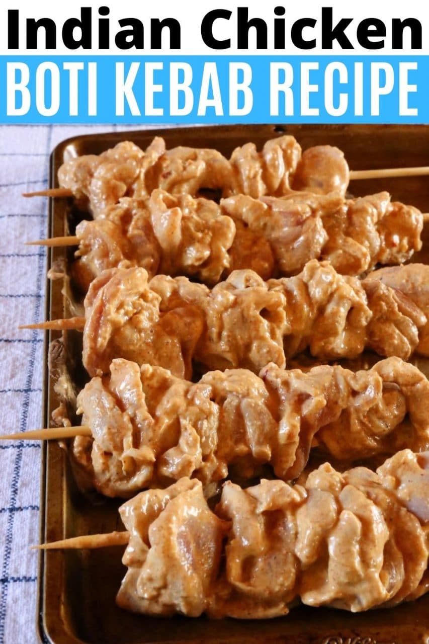 Where boti means “pieces of meat” and kabab refers to the fact they are grilled over a barbecue on skewers. They can also be roasted in an oven and finished off with a nice char under a hot broiler.