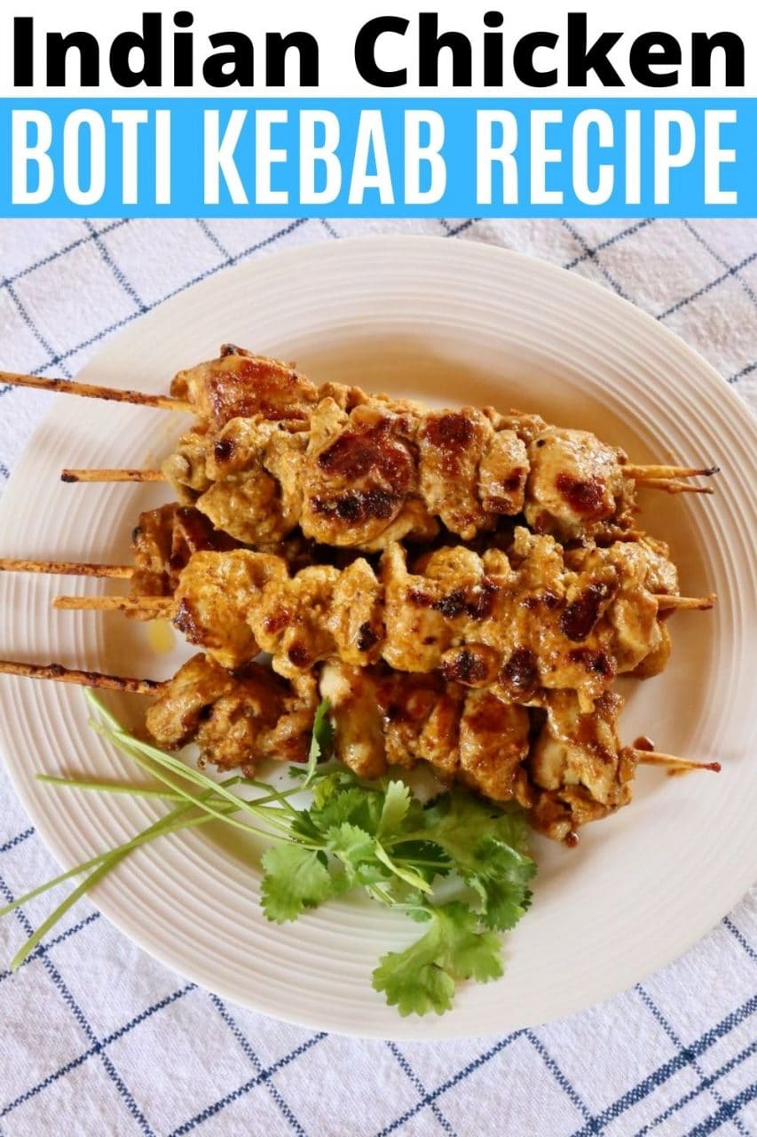 Chicken Boti Kabab is a popular grilled snack and appetizer from India served on skewers.