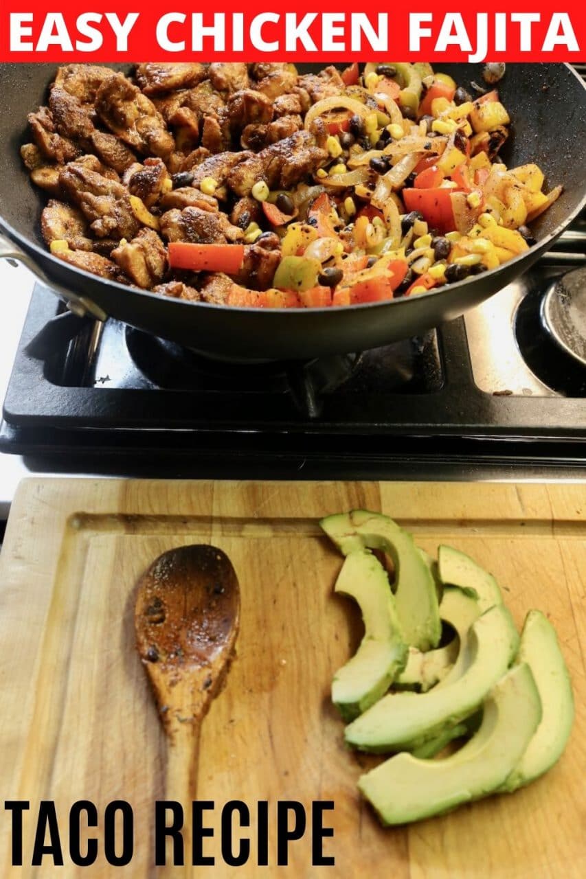 You can prepare easy vegetarian fajitas by simply removing the chicken from this recipe. The spicy marinated vegetables cooked with beans, corn and avocado are simple and satisfying. If you’re looking for a heartier filling, we suggest adding sautéed mushrooms or Mexican roasted cauliflower.