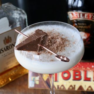 - Garnish: we like to shave the top of each cocktail with Toblerone. Rest a cocktail pick skewered with a piece of Toblerone bar before serving.