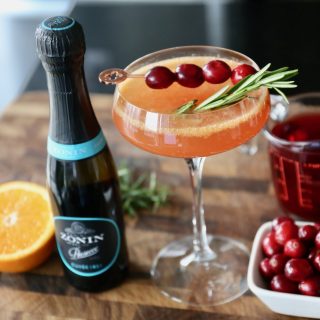 Serve the festive drink in an elegant coupe glass garnished with a rosemary sprig and fresh cranberry skewer. It’ll be a big hit at your next holiday bash or Christmas morning family brunch.