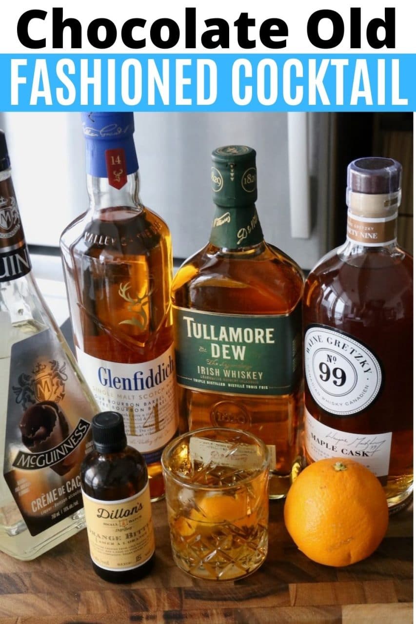 Festive Chocolate Old Fashioned Cocktail recipe ingredients.