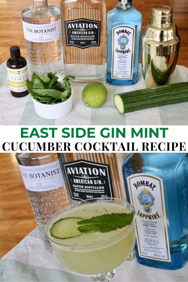 This homemade Eastside Cocktail recipe features premium gin, lime juice, fresh mint, cucumber slices, simple syrup & lemon bitters.