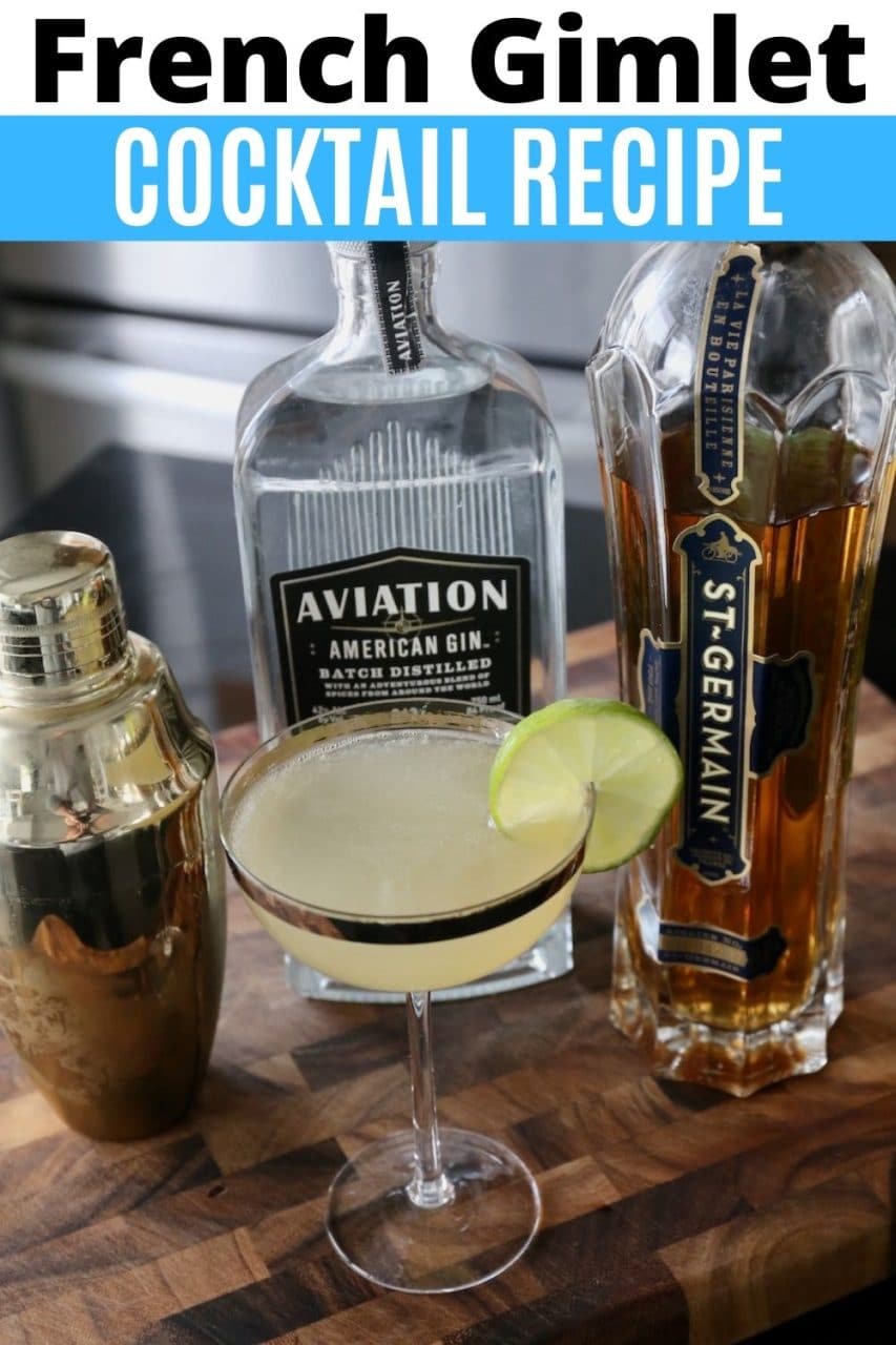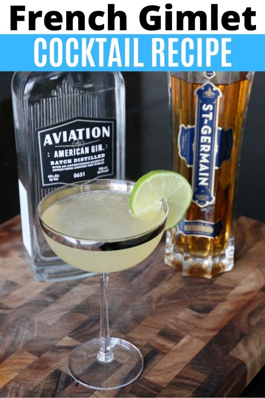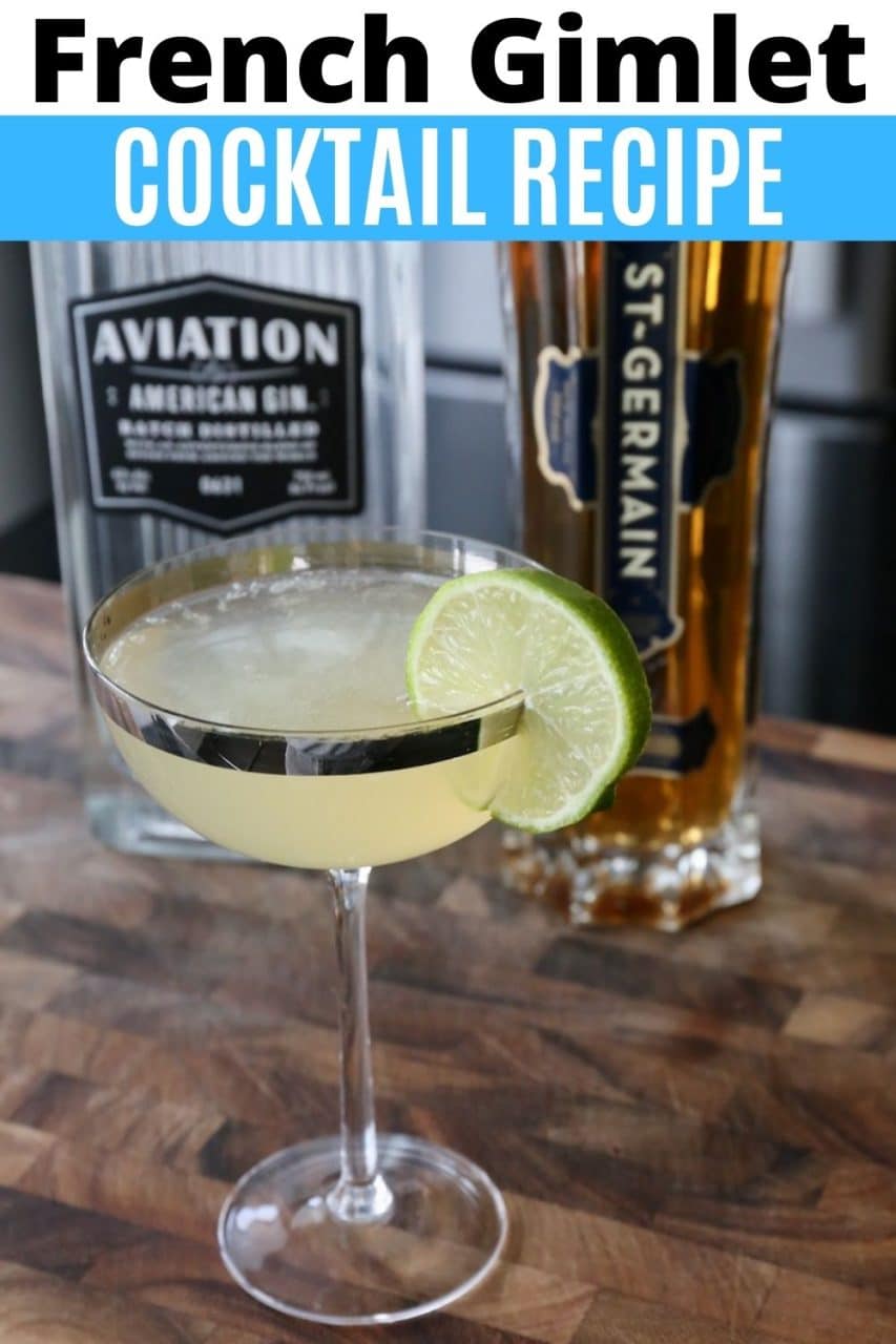 A traditional French Gimlet is a gin gimlet prepared with elderflower liqueur.