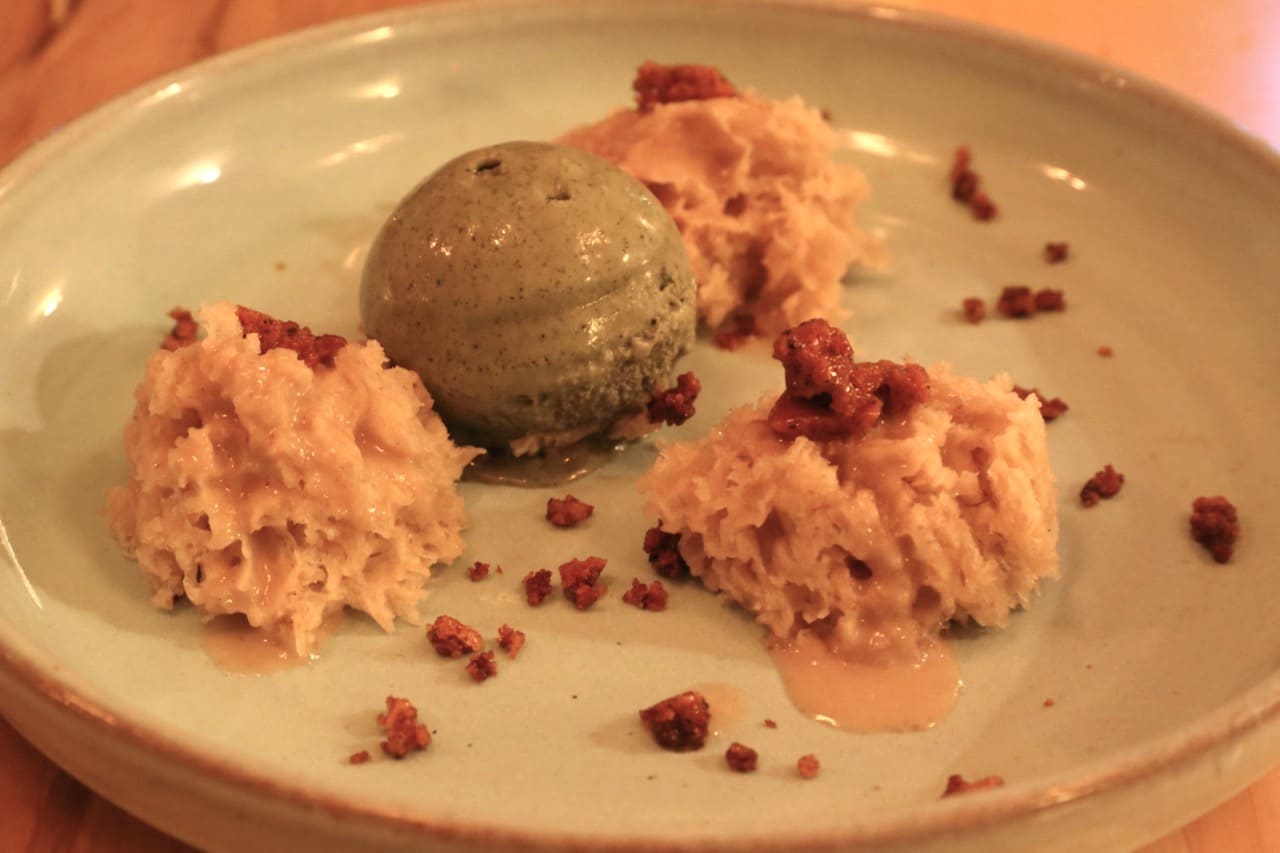 Mugwort and Red Bean | korean red bean custard, mugwort ice cream, red bean sponge cake, honey comb