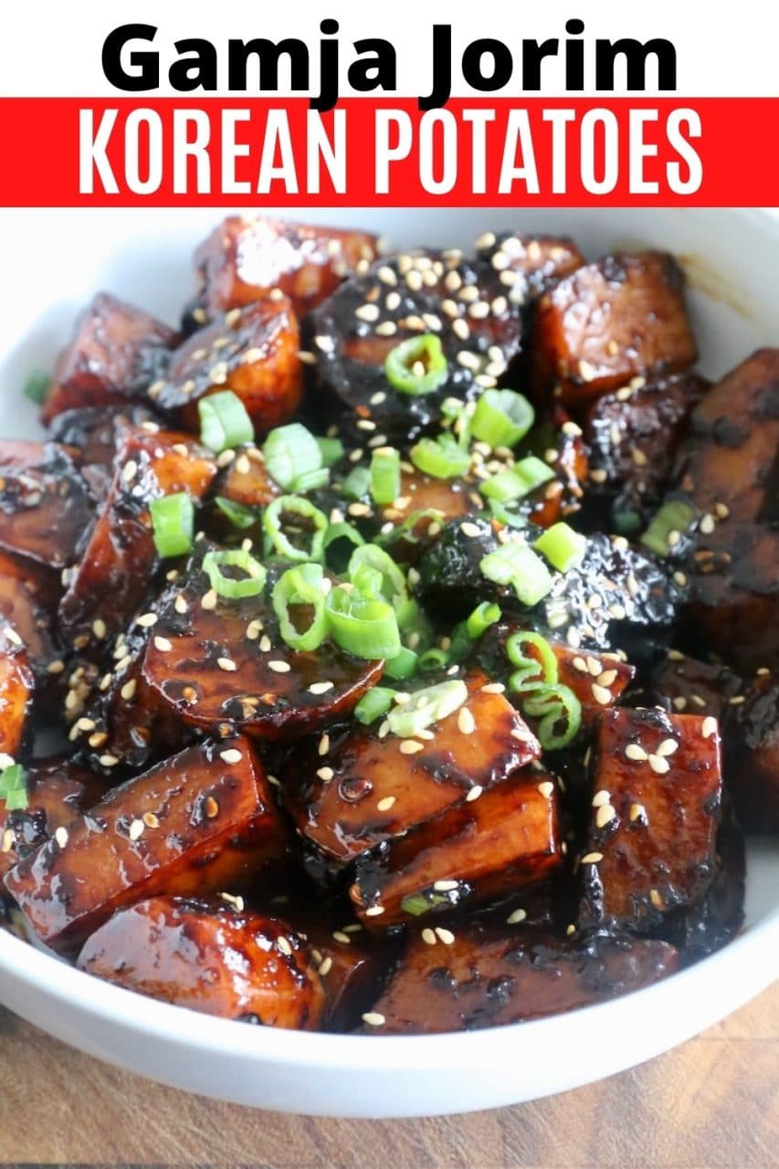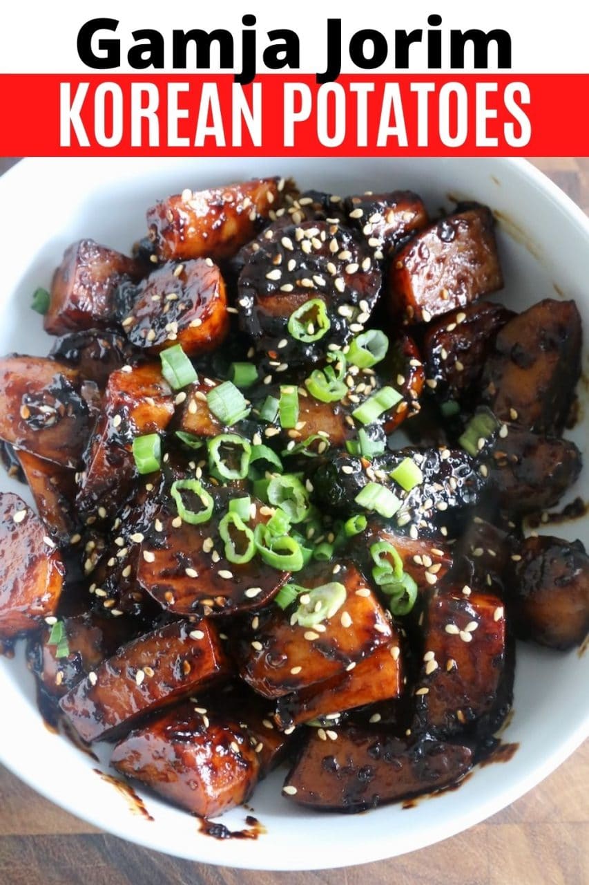 Our quick & easy homemade Gamja Jorim recipe features tender potato chunks that are simmered in a sweet and salty sauce made of soy sauce, rice wine vinegar, brown sugar, garlic and sesame oil.