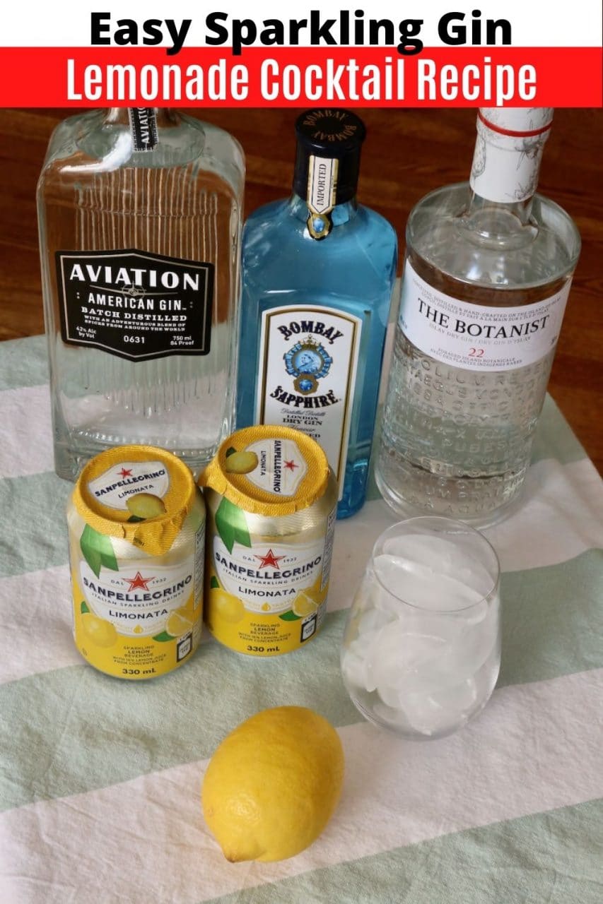Easy Sparkling Gin and Lemonade Cocktail recipe ingredients.