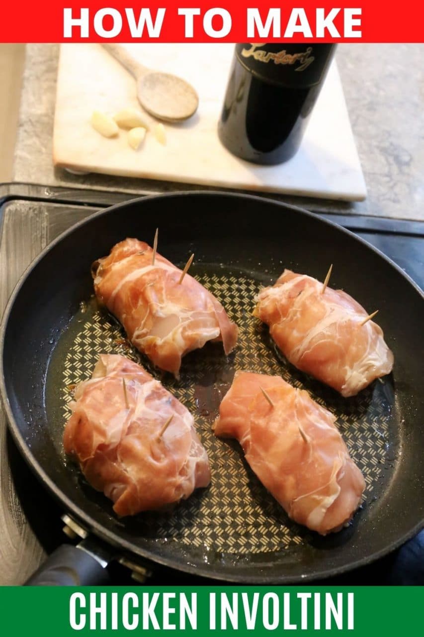 - Add olive oil to the buttery non-stick skillet and brown the Involtini di Pollo on all sides 5-7 minutes.