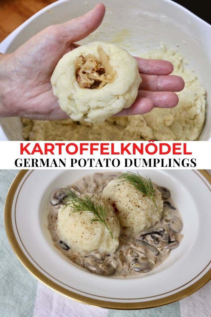 We like to serve the dish as a shareable appetizer at German-themed dinner parties as it is very rich. If you’re making simple Kartoffelknödel (without stuffing them or preparing a cream sauce) you can top them with chopped parsley and serve them with hearty German meat dishes like sauerbraten, pork knuckle or bratwurst.