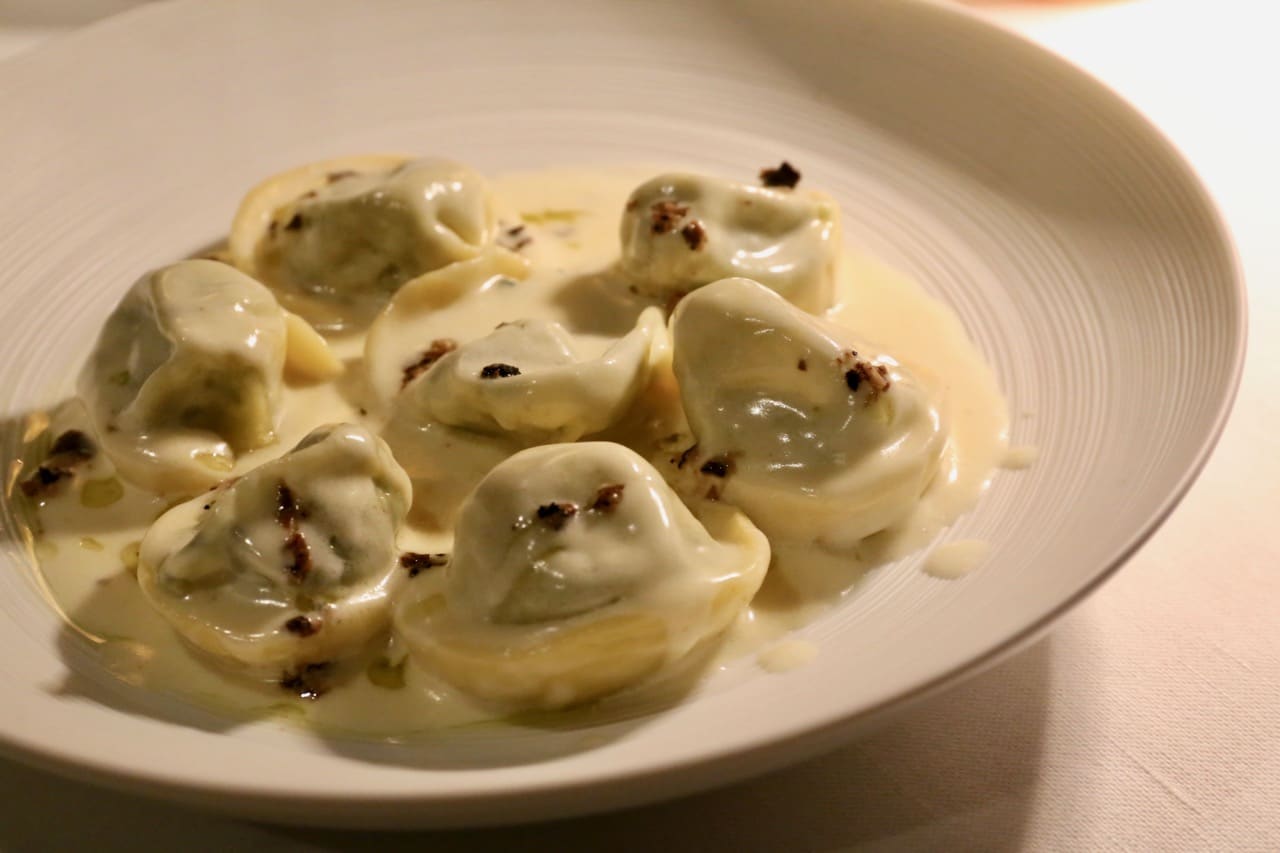 Tortelli | nettle and ricotta cheese tortelli, cream sauce, black truffle
