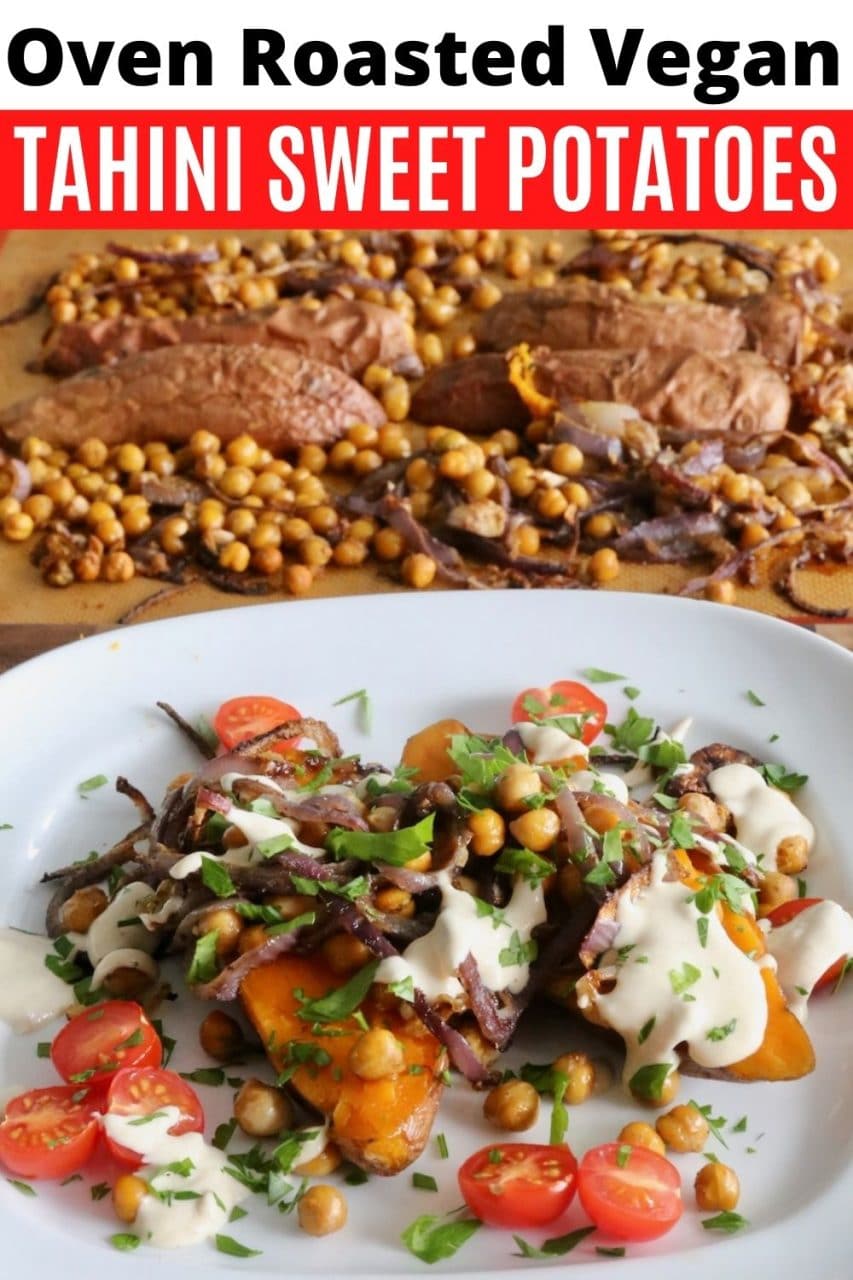 - This Tahini Sweet Potatoes recipe is quick & easy to make as the most of the ingredients are roasted together in the oven on a baking tray.