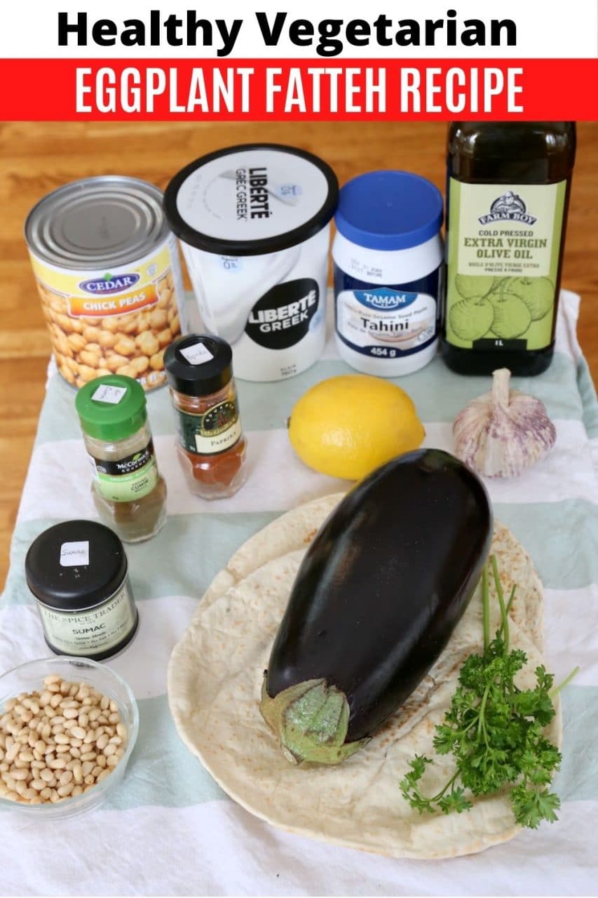 Vegetarian Eggplant Fatteh ingredients.