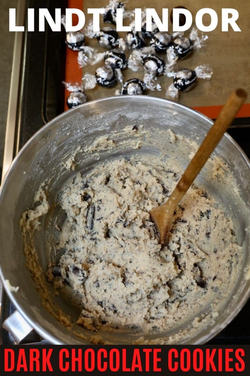 Our recipe for Lindt cookies includes two kinds of quality Swiss dark chocolate: chopped Lindt dark chocolate bars and Lindor dark chocolate truffles.