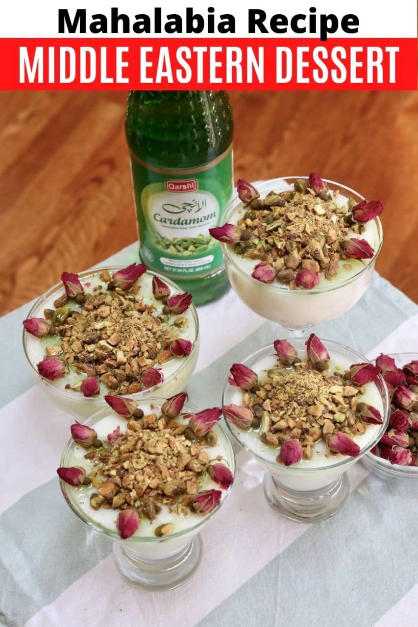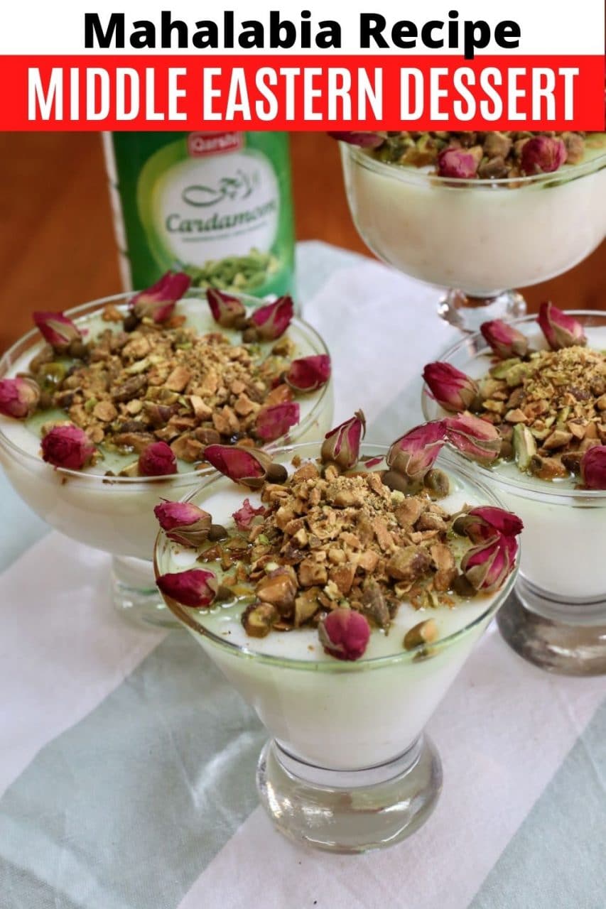 Mahalabia is a popular dessert in the Middle East that is famous for being quick & easy to make.