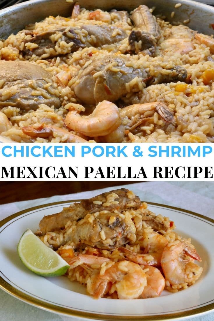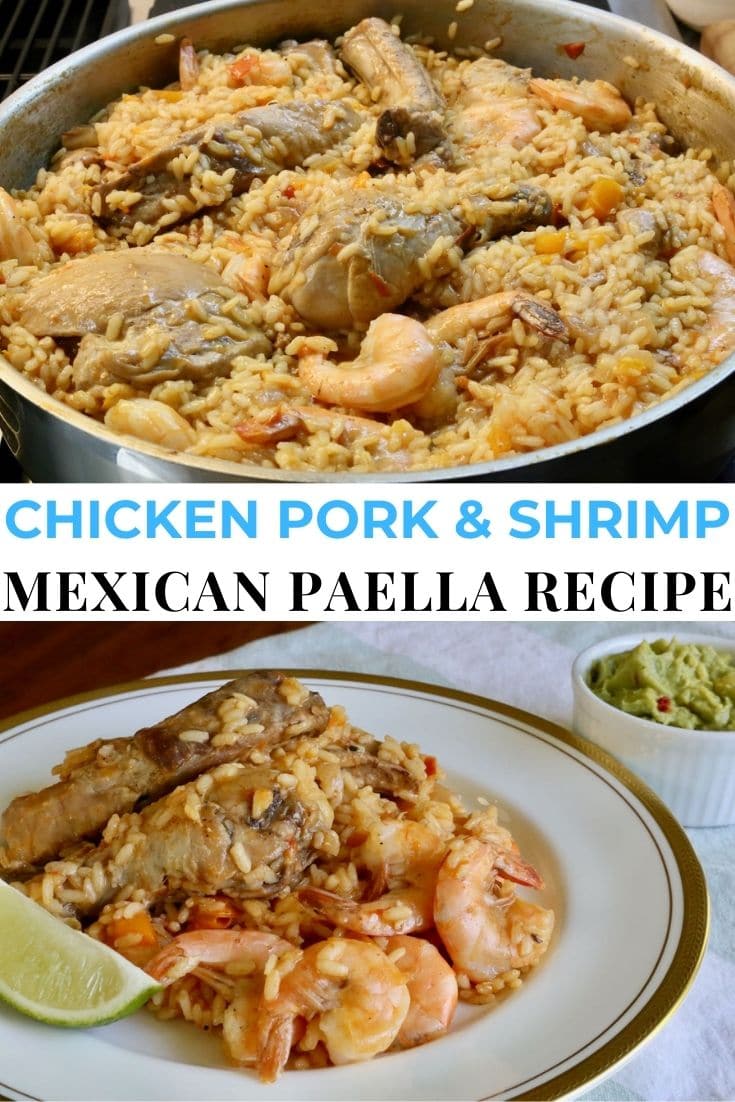 How to make traditional Paella Mexicana. Our easy Mexican Paella rice recipe features chicken, pork ribs and shrimp. Serve with guacamole.
