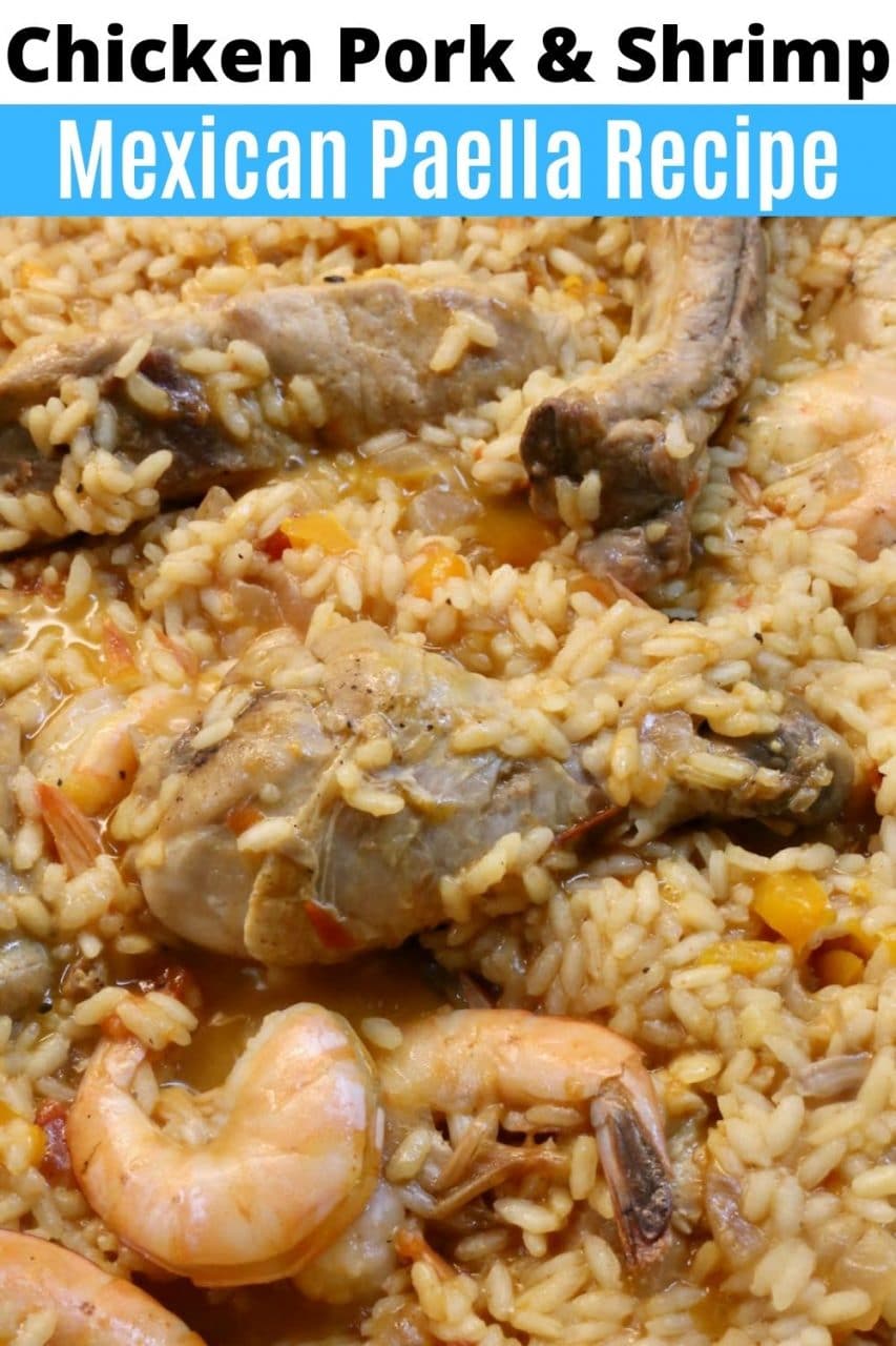 Save our Chicken Pork & Shrimp Mexican Paella Recipe to Pinterest!