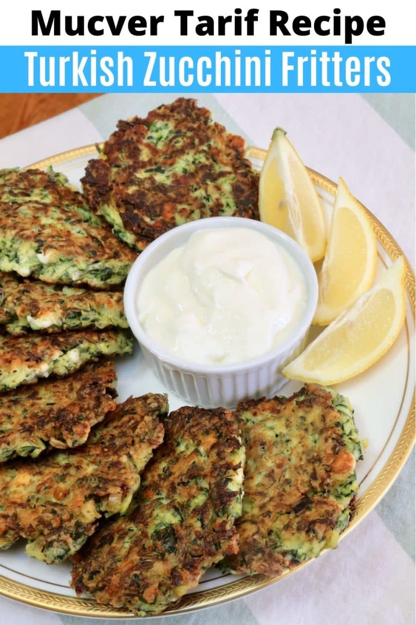 Serve Turkish Zucchini Fritters with a creamy yogurt or sour cream dip and slices of fresh lemon.