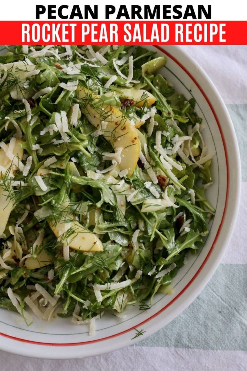 Pear and Rocket Salad is one of our favourite healthy vegetarian salads to serve during the cool Fall and Winter months.