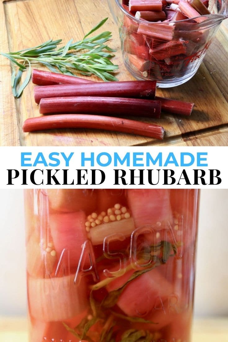 This healthy vegan pickled rhubarb recipe suggests chopping the stalks into 1-inch pieces. This makes it easy to serve over yogurt or as a condiment in a small ramekin for a cheese & charcuterie board.