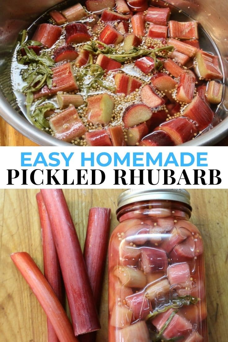 You can also pickle rhubarb as long stalks. Simply cut them to be 1 inch shorter than the length of your mason jar. Once the rhubarb are standing in the jar pour the hot pickling liquid over them and let rest for up to a week. We particularly like to prepare the recipe this way if we are going to be giving away pickled rhubarb in jars as a gift to family or friends as they look gorgeous.
