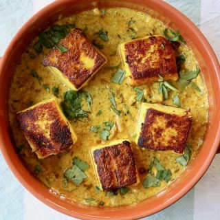 I served a creamy Chicken Shahi Korma with crunchy Indian Onion Salad for an al fresco lunch in the spring. While in the summer at the cottage in Muskoka we enjoyed a vegetarian feast featuring Shahi Paneer and Indian Chickpea Crepes.