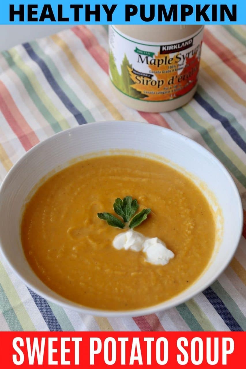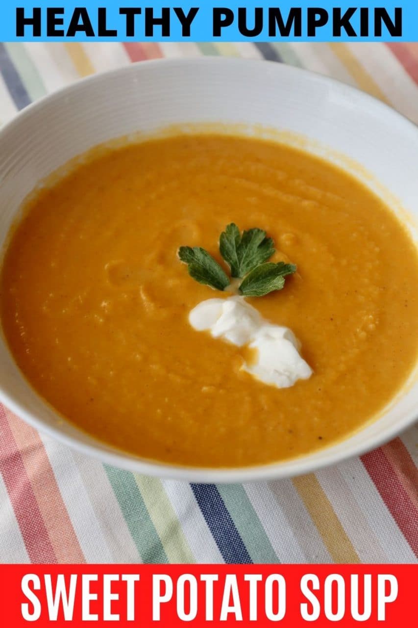 Pumpkin and Sweet Potato Soup is one of our favourite healthy soups to enjoy during the Fall harvest season.