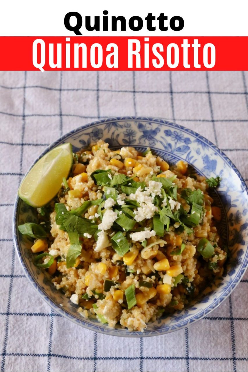 Our quick & easy Quinotto recipe is prepared in a large skillet and features flavourful ingredients commonly found in Latin America like sweet corn, spicy poblano chili, fragrant cumin, cilantro, crumbled queso fresco and squeeze of fresh lime.