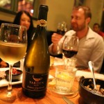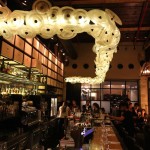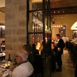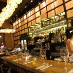 Our host leads us into the restaurant and I march past breezy patio into a spacious dining room featuring sky high ceilings with walls wrapped in stacked wine bottles and bar that twinkles via overhead chandelier which appears like a gently opened Spring flower. As we pursued the menu I chirped, “The place is packed and clearly trendy! I love the ambiance and it’s a marvel that one can hear moody background music but don’t have to scream across the table to have an intimate conversation.”