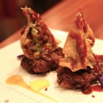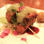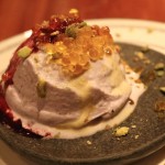 We started the evening by clinking cocktail glasses and sipping through mint forward Bollywood Mojito and tart Kala Khatta Margarita. Over the next two hours the kitchen sent out a parade of pretty plates. Amaya’s new modern menu was best expressed via lobster and corn samosas, tandoori chicken tikka (curry leaf, mustard seeds, mint foam, milk fritter) and ghee roast lamb tenderloin with wasabi ice cream. Our memorable sweet finish featured a table side liquid nitrogen ice cream performance. A moody cool cloud poured over our table as we plopped spoons of creamy floral fun into our smug mugs. Hints of rose water, blueberries, pistachio, cardamom and saffron caviar offered a final bow to a reimagined Indian experience.