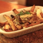 Au Pied de Cochon is a champion of foie gras and those “three little pigs.” Our favourite dish of the night believe it or not was the salad special which featured warm pork lardons, pecan, aged cheddar and root vegetables. It was the naughtiest salad I’ve ever eaten. We sampled two foie centric dishes which were as decadent as one could possibly imagine: perched on top a poutine and chevre slathered french toast. We crossed the finish line with a massive Berkshire pork chop featuring smooth and creamy roasted chestnut mashed potatoes accompanied by crisp green beans and sweet cranberry confit.