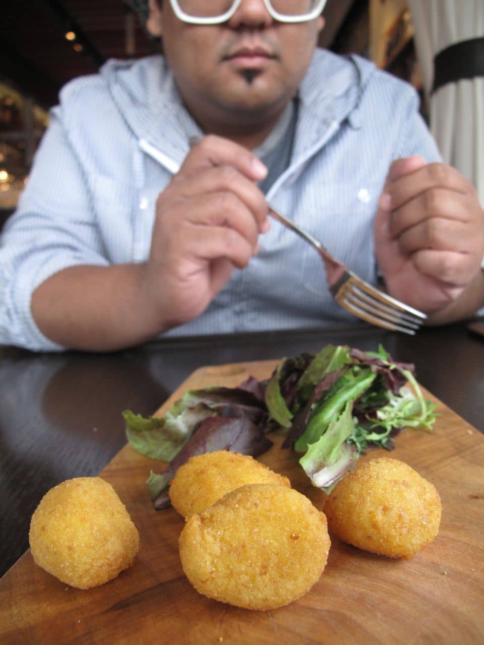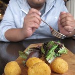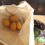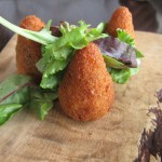 Fried Rice cones filled with Veal Ragu’, Mozzarella & Peas