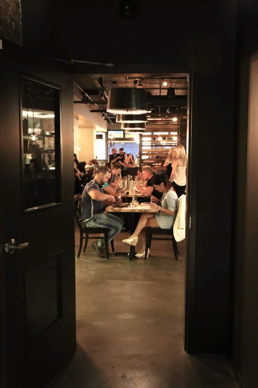 Just as the sun was setting across the city I found myself walking along Stephen Avenue in search of Briggs Kitchen + Bar. My first dinner in Calgary would be at this lively haute sports bar meets hipster fine dining room. Guests have an opportunity to sit at two different spaces which offer there own distinct vibe. Hang a right for the sports bar offering people watchers the perfect opportunity to stare out the ceiling to floor windows that overlook the street. Or, take a left to peak at the open concept kitchen which stands in front of a dimly lit dining room.