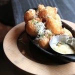 The bartender at Briggs has created a fantastic cocktail list. I sipped my way through two of their signatures which included a tart Lemon Pepper Buck and floral Barbaram. Highlights from the kitchen include Potato Tic Tacs (imagine fluffy deep fried mashed potatoes with asiago dipped in aioli…they are addictive to say the least) Josper Smoked Chicken Wings and a massive mapled braised Pork Belly which sat perched on top of a crunchy apple slaw.